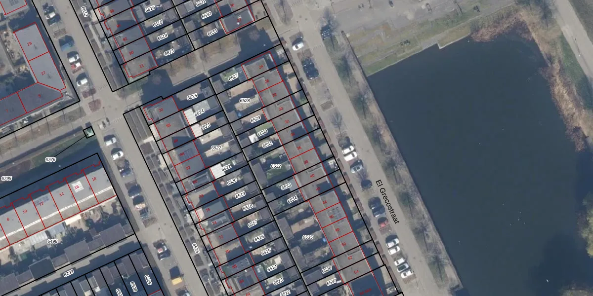 El Grecostraat 36 is gelegen op kadastraal perceel AMR04P6532. Deze kadastrale aanduiding is uniek en wordt gebruikt door het Kadaster om eigendomsrechten en andere zakelijke rechten vast te leggen. Het perceel maakt onderdeel uit van de kadastrale gemeente Almere.