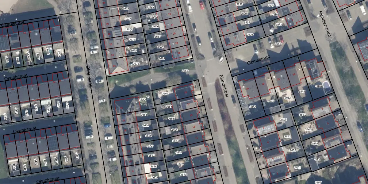 Elandstraat 19 is gelegen op kadastraal perceel AMR04N3663. Deze kadastrale aanduiding is uniek en wordt gebruikt door het Kadaster om eigendomsrechten en andere zakelijke rechten vast te leggen. Het perceel maakt onderdeel uit van de kadastrale gemeente Almere.