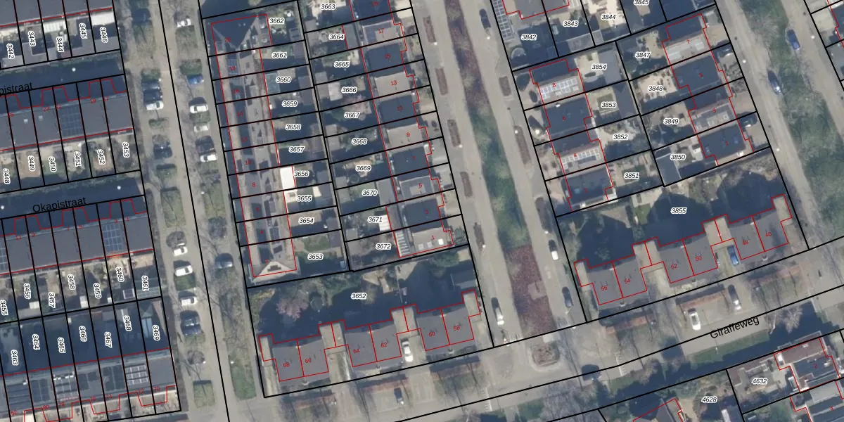 Gebruik de zoekbalk of klik op een perceel voor informatie over de adressen binnen dit perceel.