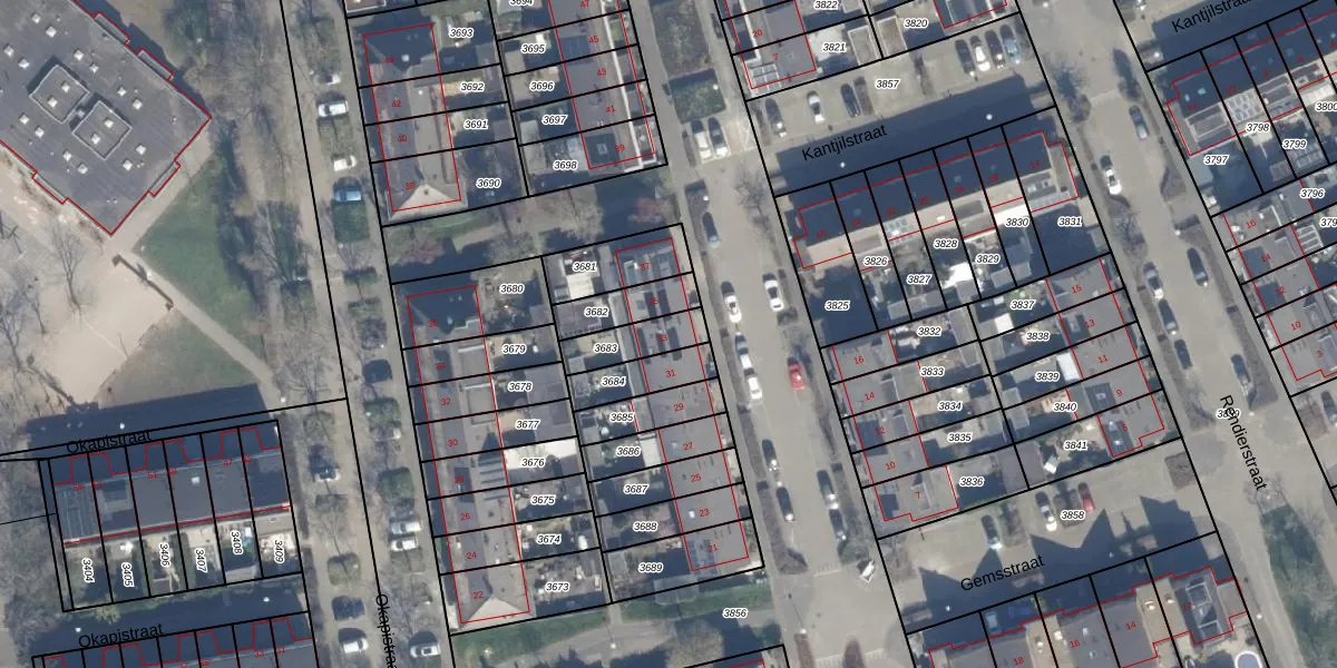 Gebruik de zoekbalk of klik op een perceel voor informatie over de adressen binnen dit perceel.