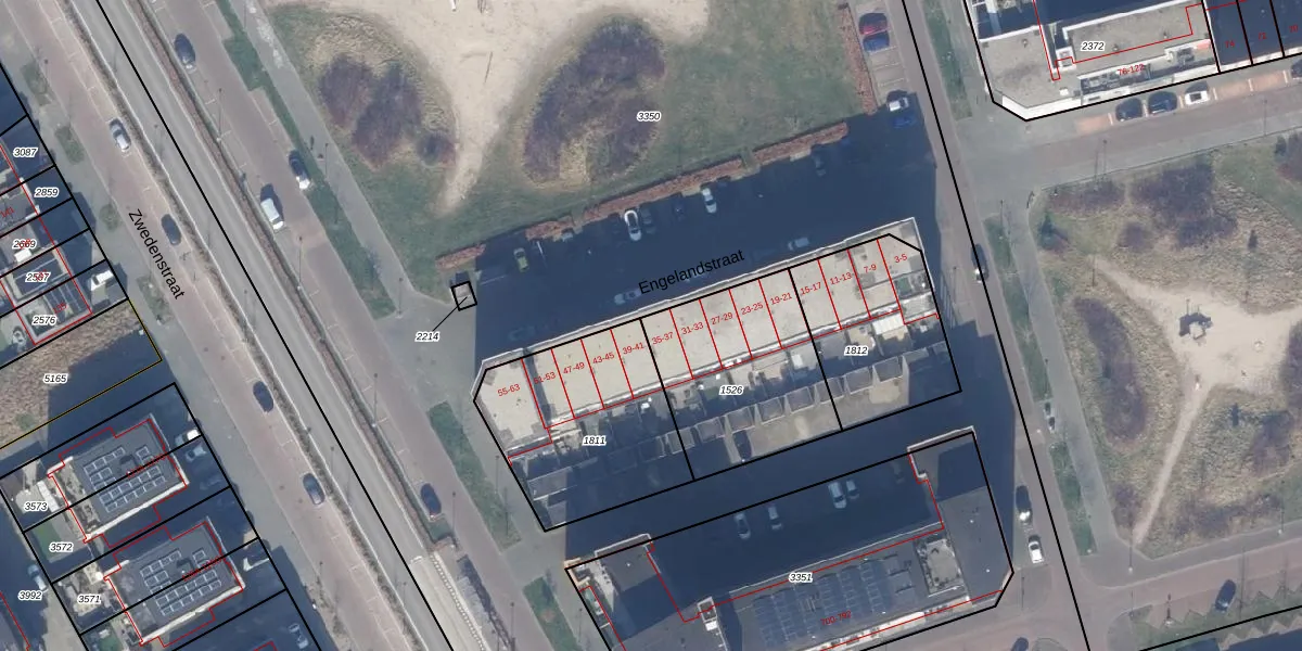 Het perceel waarop Engelandstraat 37 staat heeft een oppervlakte van 633 m². Dit is een groot perceel. De perceeloppervlakte wordt geregistreerd door het Kadaster. Gedetailleerde informatie over de maten van dit perceel kunt u vinden in het rapport Kadastrale kaart met maatvoering van Engelandstraat 37.