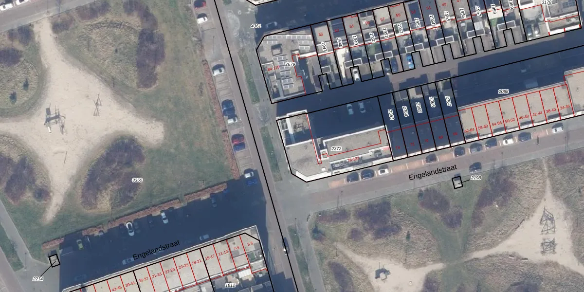 Engelandstraat 90 is gelegen op kadastraal perceel AMR04W2372. Deze kadastrale aanduiding is uniek en wordt gebruikt door het Kadaster om eigendomsrechten en andere zakelijke rechten vast te leggen. Het perceel maakt onderdeel uit van de kadastrale gemeente Almere.