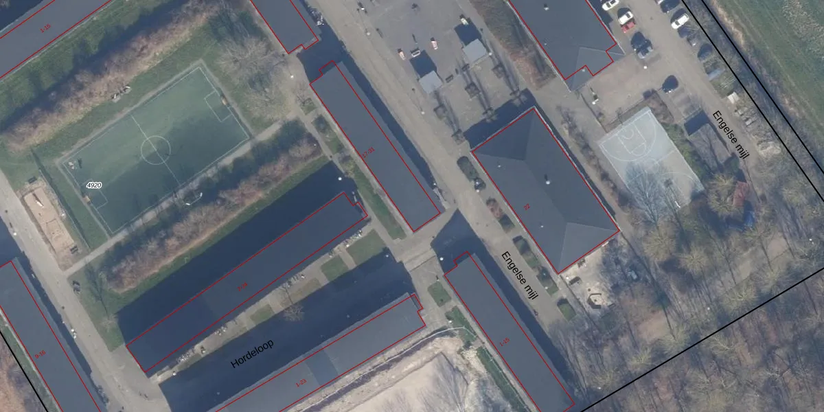 Het perceel waarop Engelse mijl 25 staat heeft een oppervlakte van 3,9 ha. Dit is een zeer groot perceel. De perceeloppervlakte wordt geregistreerd door het Kadaster. Gedetailleerde informatie over de maten van dit perceel kunt u vinden in het rapport Kadastrale kaart met maatvoering van Engelse mijl 25.
