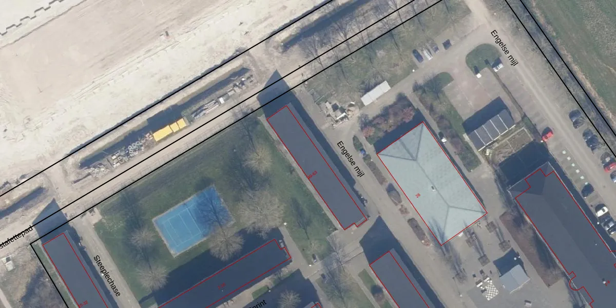 Het perceel waarop Engelse mijl 53 staat heeft een oppervlakte van 3,9 ha. Dit is een zeer groot perceel. De perceeloppervlakte wordt geregistreerd door het Kadaster. Gedetailleerde informatie over de maten van dit perceel kunt u vinden in het rapport Kadastrale kaart met maatvoering van Engelse mijl 53.