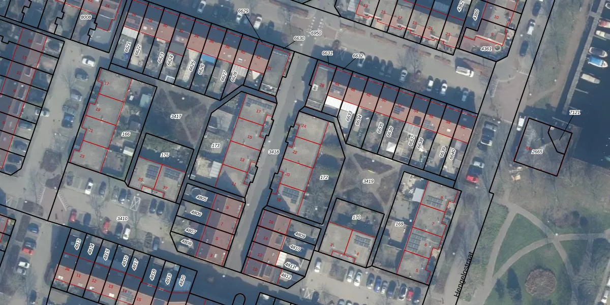 Het adres ligt op het perceel AMR04-K-172, dat zich in de kadastrale gemeente Almere bevindt. De gemiddelde perceelgrootte in Almere is 3329,36 m². Dit perceel is kleiner: de perceeloppervlakte bedraagt 606 m². De grootste perceeloppervlakte in de kadastrale gemeente is 32,12 km². De kleinste oppervlakte bedraagt 0 m². Er zijn 4 adressen aanwezig op het perceel. De huidige grenzen van het perceel zijn digitaal in de Basisregistratie Kadaster (BRK) geregistreerd op 20-08-1997.