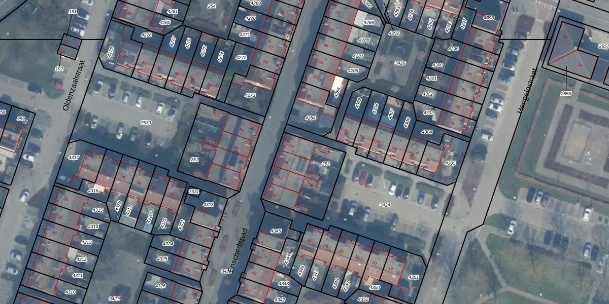 Het perceel waarop Enschedepad 58 staat heeft een oppervlakte van 505 m². Dit is een groot perceel. De perceeloppervlakte wordt geregistreerd door het Kadaster. Gedetailleerde informatie over de maten van dit perceel kunt u vinden in het rapport Kadastrale kaart met maatvoering van Enschedepad 58.