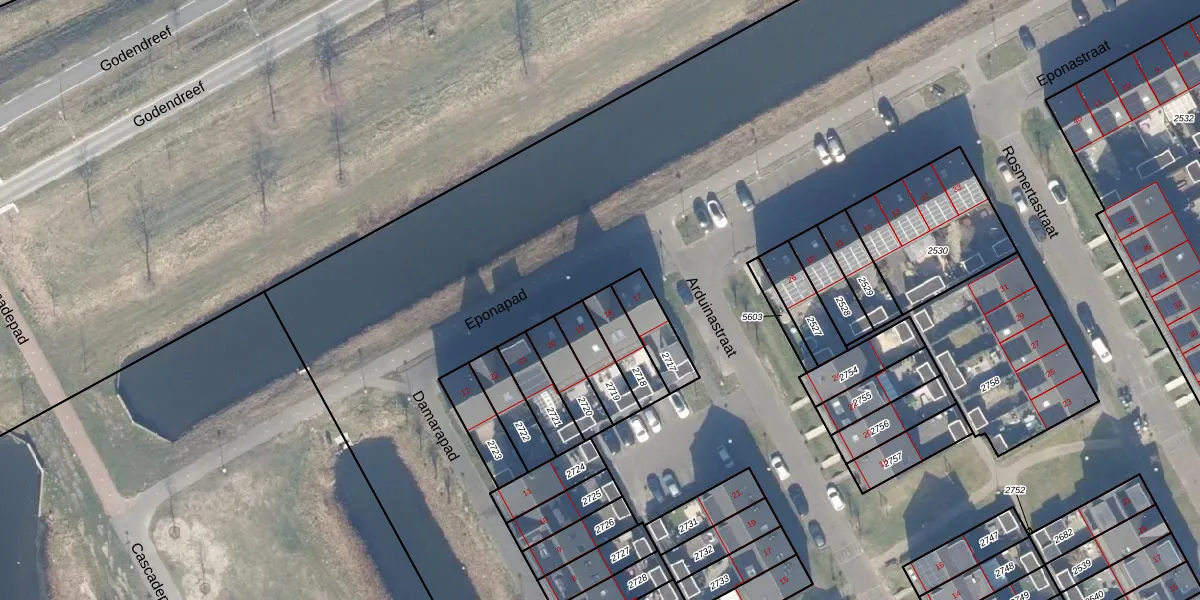 Het perceel waarop Eponastraat 18 staat heeft een oppervlakte van 112 m². Dit is een middelgroot perceel. De perceeloppervlakte wordt geregistreerd door het Kadaster. Gedetailleerde informatie over de maten van dit perceel kunt u vinden in het rapport Kadastrale kaart met maatvoering van Eponastraat 18.