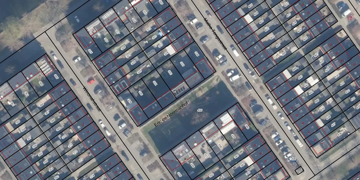 Eric de Noormanhof 5 is gelegen op kadastraal perceel AMR04R332. Deze kadastrale aanduiding is uniek en wordt gebruikt door het Kadaster om eigendomsrechten en andere zakelijke rechten vast te leggen. Het perceel maakt onderdeel uit van de kadastrale gemeente Almere.
