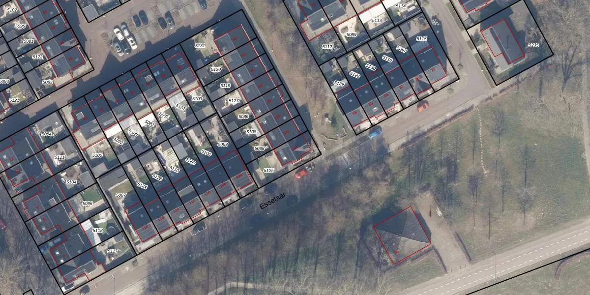 Het perceel waarop Esselaar 104 staat heeft een oppervlakte van 225 m². Dit is een middelgroot perceel. De perceeloppervlakte wordt geregistreerd door het Kadaster. Gedetailleerde informatie over de maten van dit perceel kunt u vinden in het rapport Kadastrale kaart met maatvoering van Esselaar 104.