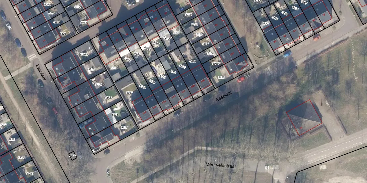 Het perceel waarop Esselaar 110 staat heeft een oppervlakte van 177 m². Dit is een middelgroot perceel. De perceeloppervlakte wordt geregistreerd door het Kadaster. Gedetailleerde informatie over de maten van dit perceel kunt u vinden in het rapport Kadastrale kaart met maatvoering van Esselaar 110.