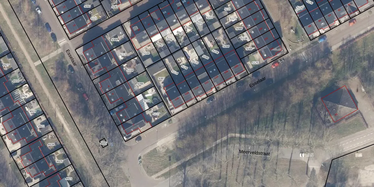 Het perceel waarop Esselaar 116 staat heeft een oppervlakte van 177 m². Dit is een middelgroot perceel. De perceeloppervlakte wordt geregistreerd door het Kadaster. Gedetailleerde informatie over de maten van dit perceel kunt u vinden in het rapport Kadastrale kaart met maatvoering van Esselaar 116.