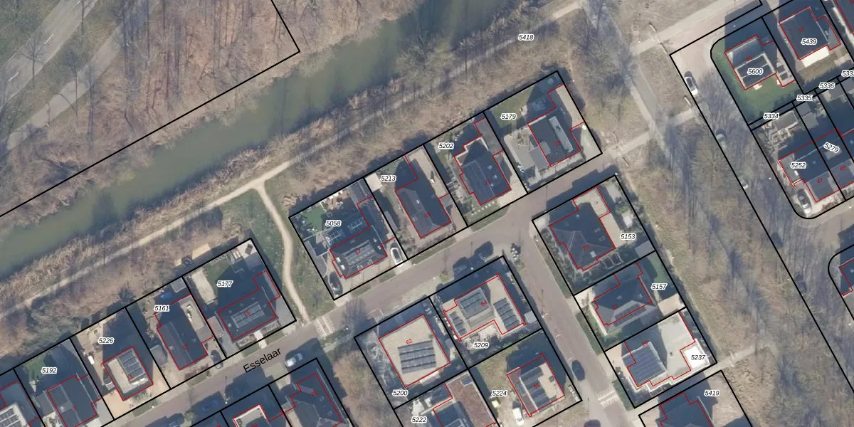 Het perceel waarop Esselaar 19 staat heeft een oppervlakte van 352 m². Dit is een groot perceel. De perceeloppervlakte wordt geregistreerd door het Kadaster. Gedetailleerde informatie over de maten van dit perceel kunt u vinden in het rapport Kadastrale kaart met maatvoering van Esselaar 19.