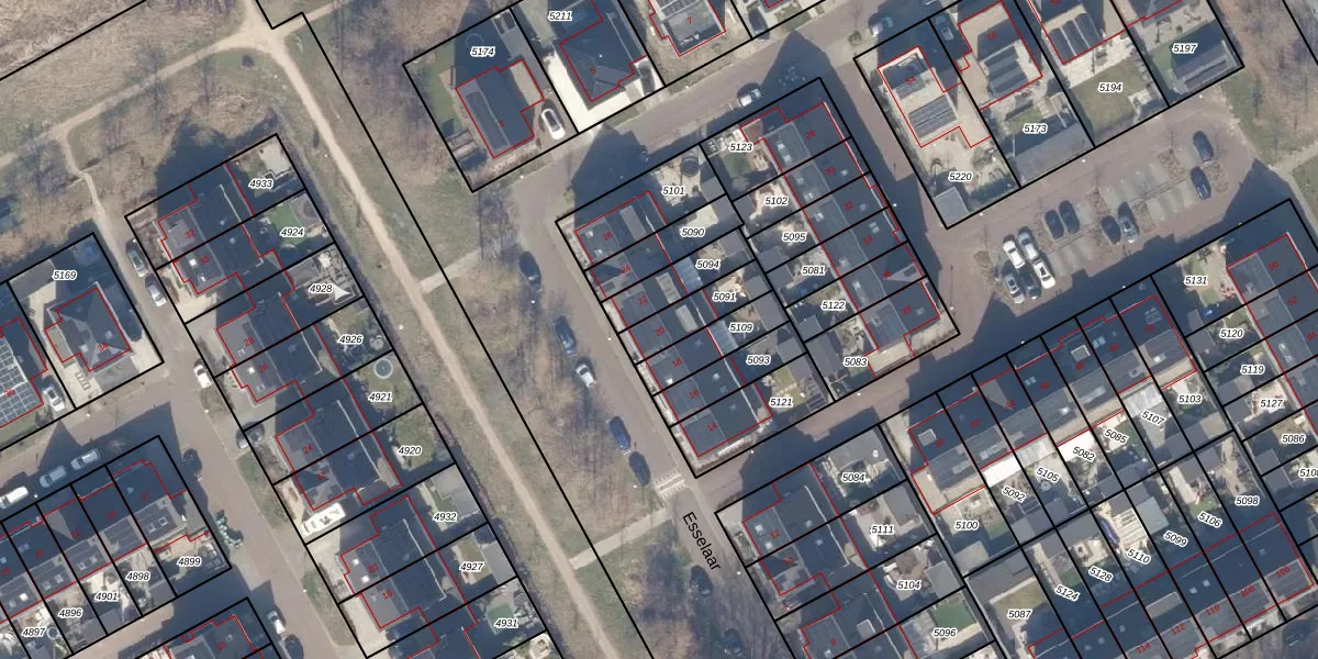Het perceel waarop Esselaar 20 staat heeft een oppervlakte van 129 m². Dit is een middelgroot perceel. De perceeloppervlakte wordt geregistreerd door het Kadaster. Gedetailleerde informatie over de maten van dit perceel kunt u vinden in het rapport Kadastrale kaart met maatvoering van Esselaar 20.