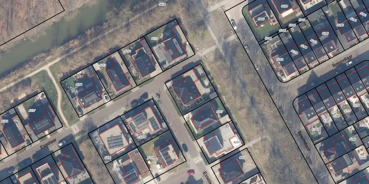 Het perceel waarop Esselaar 25 staat heeft een oppervlakte van 443 m². Dit is een groot perceel. De perceeloppervlakte wordt geregistreerd door het Kadaster. Gedetailleerde informatie over de maten van dit perceel kunt u vinden in het rapport Kadastrale kaart met maatvoering van Esselaar 25.