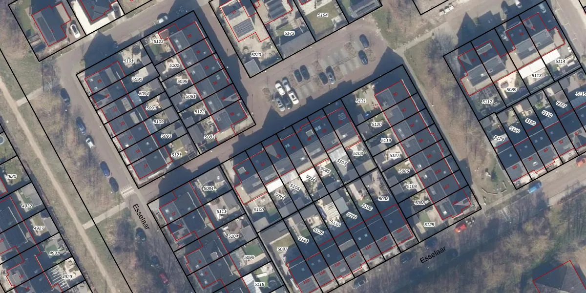 Het perceel waarop Esselaar 46 staat heeft een oppervlakte van 160 m². Dit is een middelgroot perceel. De perceeloppervlakte wordt geregistreerd door het Kadaster. Gedetailleerde informatie over de maten van dit perceel kunt u vinden in het rapport Kadastrale kaart met maatvoering van Esselaar 46.