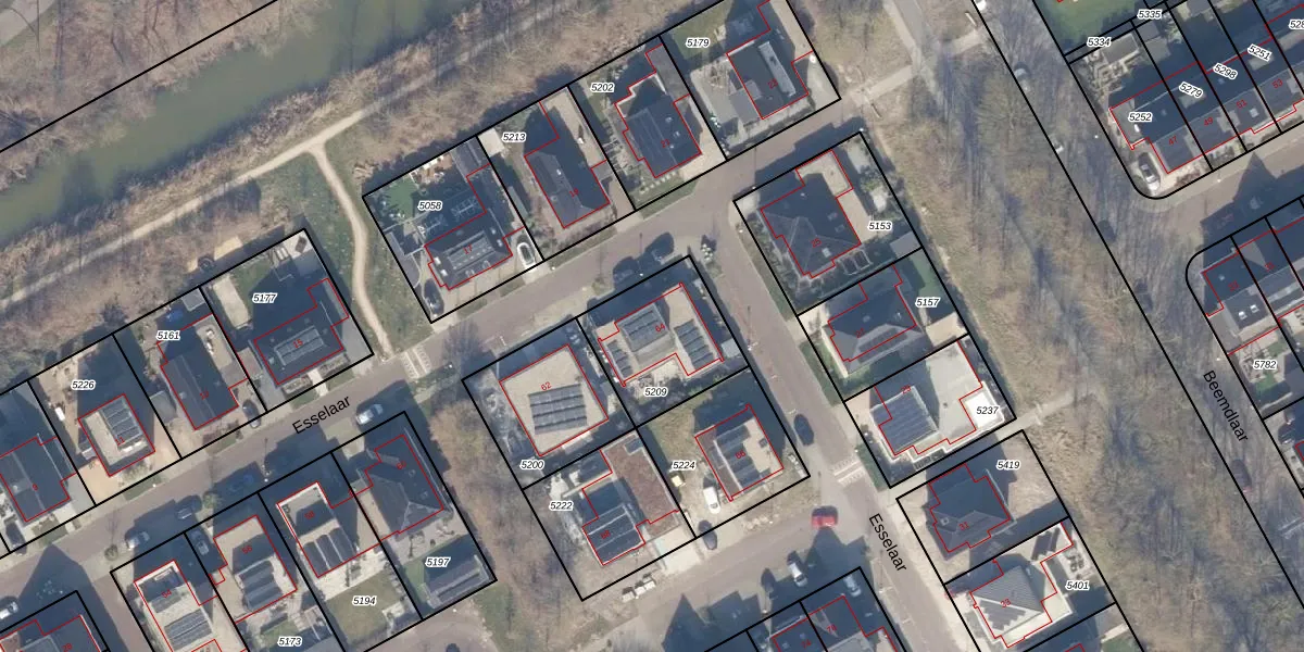 Het perceel waarop Esselaar 64 staat heeft een oppervlakte van 383 m². Dit is een groot perceel. De perceeloppervlakte wordt geregistreerd door het Kadaster. Gedetailleerde informatie over de maten van dit perceel kunt u vinden in het rapport Kadastrale kaart met maatvoering van Esselaar 64.