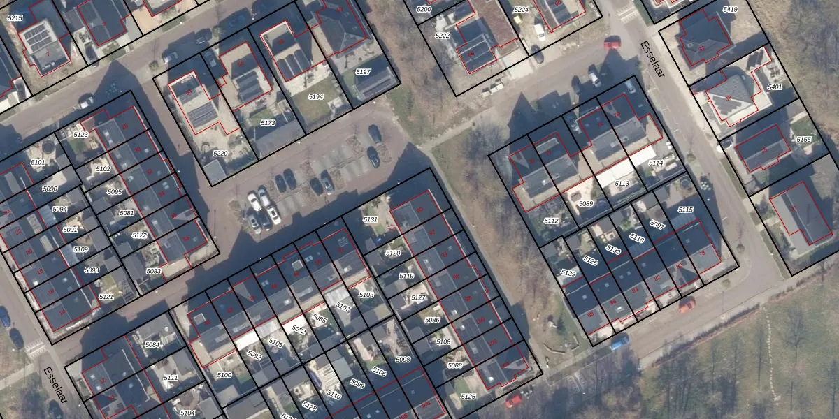 Het perceel waarop Esselaar 90 staat heeft een oppervlakte van 261 m². Dit is een middelgroot perceel. De perceeloppervlakte wordt geregistreerd door het Kadaster. Gedetailleerde informatie over de maten van dit perceel kunt u vinden in het rapport Kadastrale kaart met maatvoering van Esselaar 90.