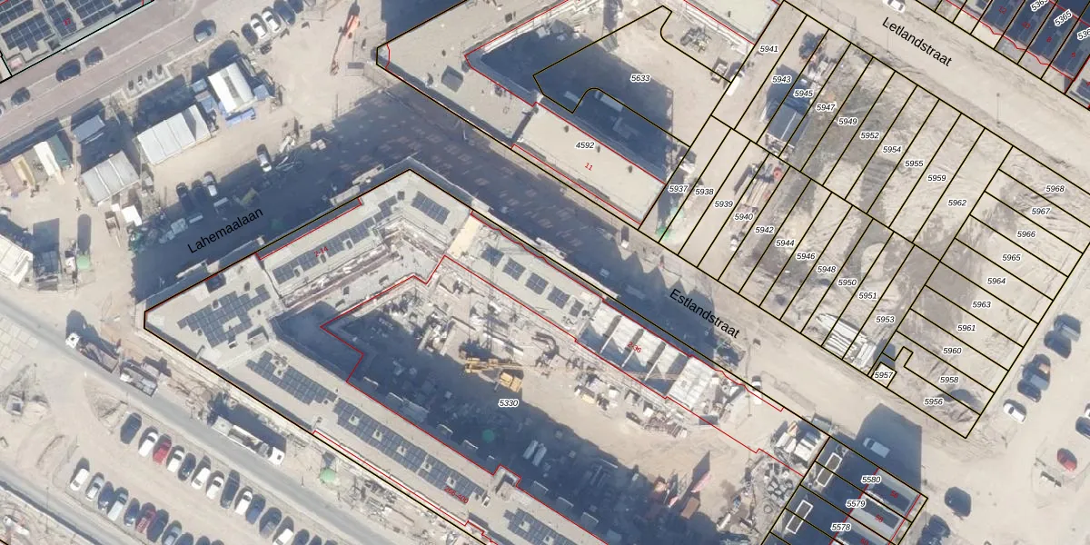 Het perceel waarop Estlandstraat 12 staat heeft een oppervlakte van 5356 m². Dit is een zeer groot perceel. De perceeloppervlakte wordt geregistreerd door het Kadaster. Gedetailleerde informatie over de maten van dit perceel kunt u vinden in het rapport Kadastrale kaart met maatvoering van Estlandstraat 12.