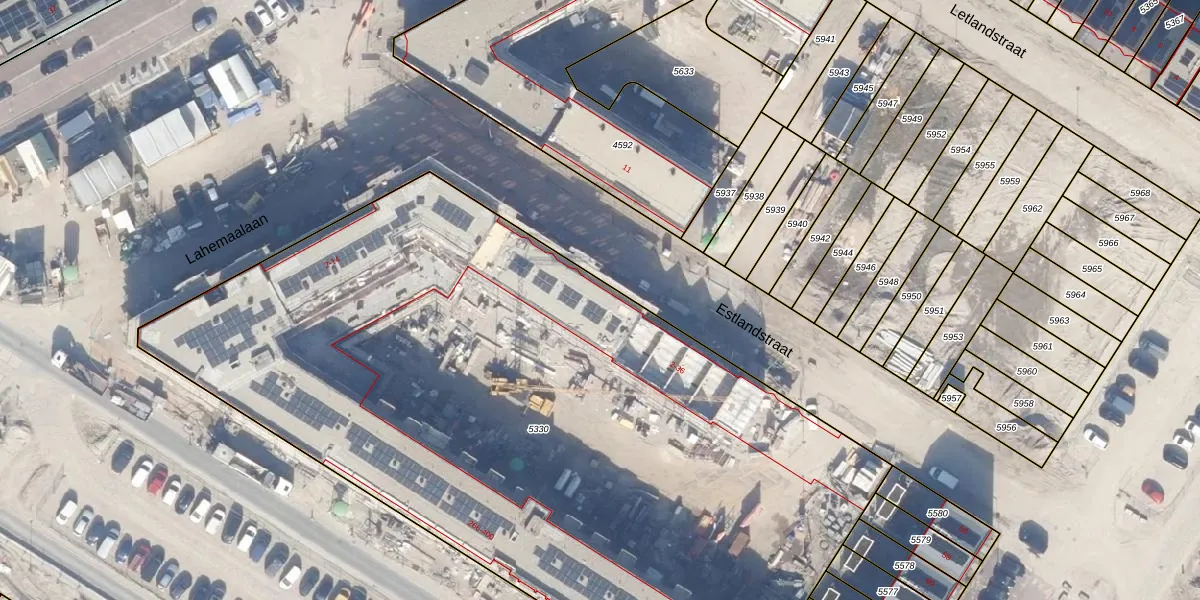 Het perceel waarop Estlandstraat 14 staat heeft een oppervlakte van 5356 m². Dit is een zeer groot perceel. De perceeloppervlakte wordt geregistreerd door het Kadaster. Gedetailleerde informatie over de maten van dit perceel kunt u vinden in het rapport Kadastrale kaart met maatvoering van Estlandstraat 14.