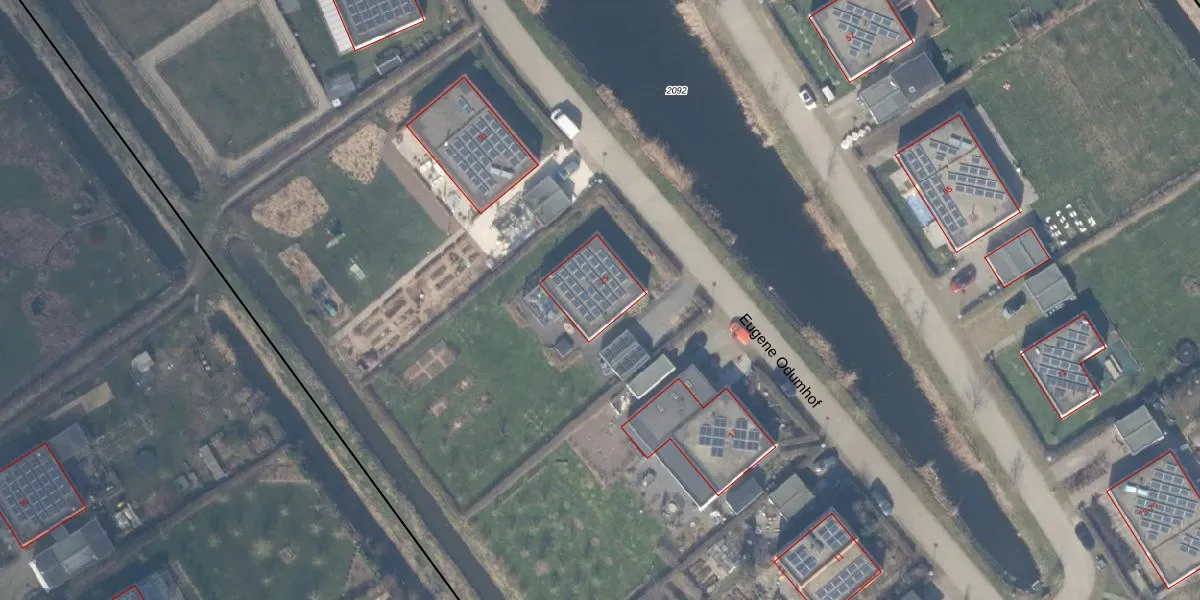 Het perceel waarop Eugene Odumhof 25 staat heeft een oppervlakte van 3,9 ha. Dit is een zeer groot perceel. De perceeloppervlakte wordt geregistreerd door het Kadaster. Gedetailleerde informatie over de maten van dit perceel kunt u vinden in het rapport Kadastrale kaart met maatvoering van Eugene Odumhof 25.