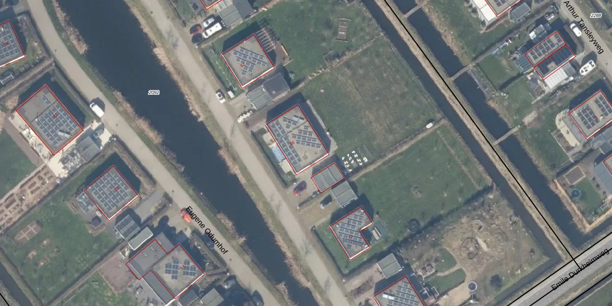 Het perceel waarop Eugene Odumhof 65 staat heeft een oppervlakte van 3,9 ha. Dit is een zeer groot perceel. De perceeloppervlakte wordt geregistreerd door het Kadaster. Gedetailleerde informatie over de maten van dit perceel kunt u vinden in het rapport Kadastrale kaart met maatvoering van Eugene Odumhof 65.