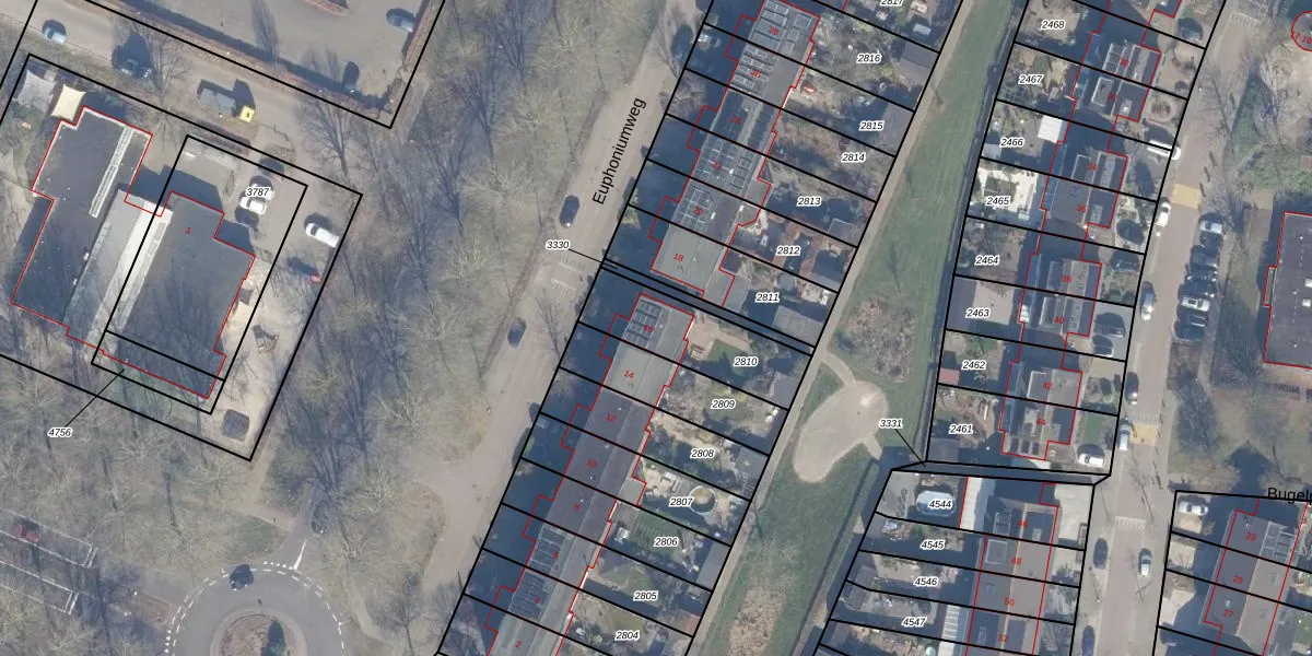 Euphoniumweg 16 is gelegen op kadastraal perceel AMR04Q2810. Deze kadastrale aanduiding is uniek en wordt gebruikt door het Kadaster om eigendomsrechten en andere zakelijke rechten vast te leggen. Het perceel maakt onderdeel uit van de kadastrale gemeente Almere.