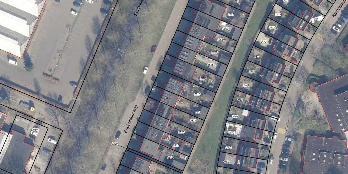 Het perceel waarop Euphoniumweg 28 staat heeft een oppervlakte van 340 m². Dit is een groot perceel. De perceeloppervlakte wordt geregistreerd door het Kadaster. Gedetailleerde informatie over de maten van dit perceel kunt u vinden in het rapport Kadastrale kaart met maatvoering van Euphoniumweg 28.