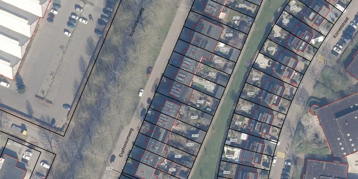 Euphoniumweg 30 is gelegen op kadastraal perceel AMR04Q2817. Deze kadastrale aanduiding is uniek en wordt gebruikt door het Kadaster om eigendomsrechten en andere zakelijke rechten vast te leggen. Het perceel maakt onderdeel uit van de kadastrale gemeente Almere.