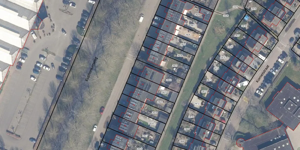Euphoniumweg 40 is gelegen op kadastraal perceel AMR04Q2822. Deze kadastrale aanduiding is uniek en wordt gebruikt door het Kadaster om eigendomsrechten en andere zakelijke rechten vast te leggen. Het perceel maakt onderdeel uit van de kadastrale gemeente Almere.
