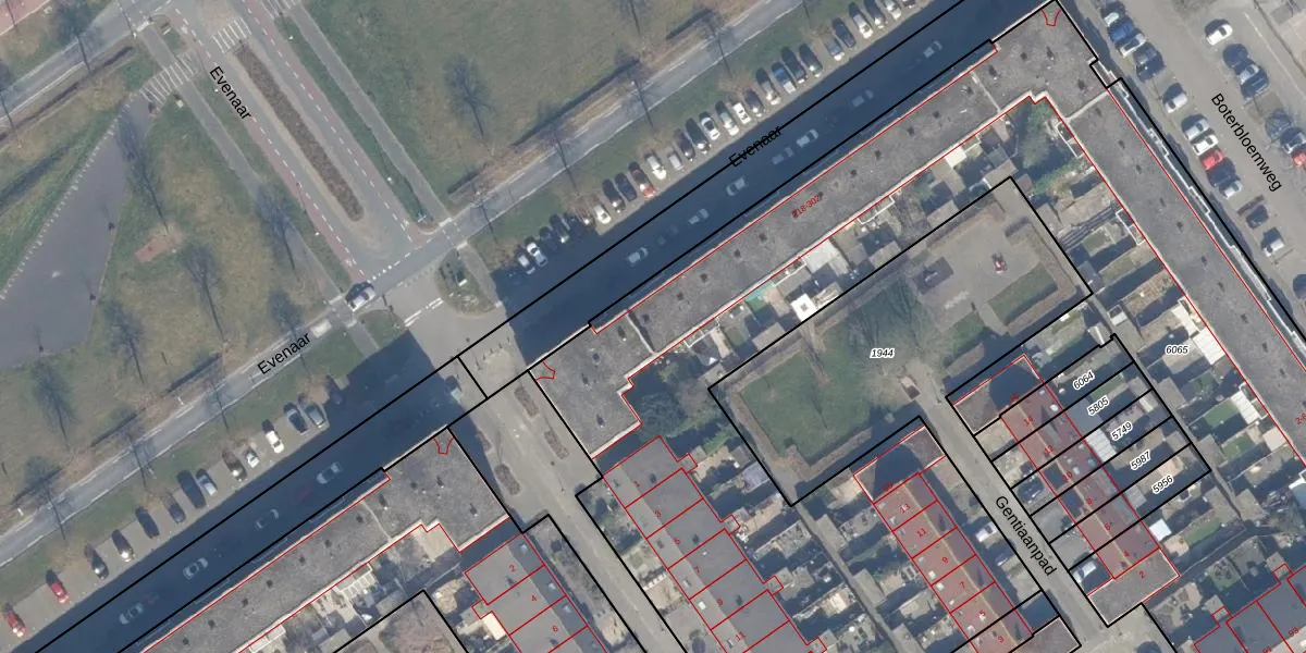 Het perceel waarop Evenaar 238 staat heeft een oppervlakte van 8354 m². Dit is een zeer groot perceel. De perceeloppervlakte wordt geregistreerd door het Kadaster. Gedetailleerde informatie over de maten van dit perceel kunt u vinden in het rapport Kadastrale kaart met maatvoering van Evenaar 238.