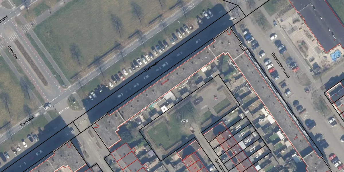 Het perceel waarop Evenaar 288 staat heeft een oppervlakte van 8354 m². Dit is een zeer groot perceel. De perceeloppervlakte wordt geregistreerd door het Kadaster. Gedetailleerde informatie over de maten van dit perceel kunt u vinden in het rapport Kadastrale kaart met maatvoering van Evenaar 288.
