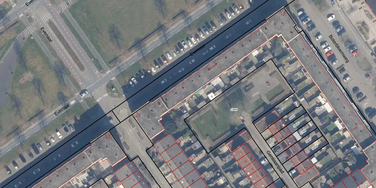 Het perceel waarop Evenaar 294 staat heeft een oppervlakte van 8354 m². Dit is een zeer groot perceel. De perceeloppervlakte wordt geregistreerd door het Kadaster. Gedetailleerde informatie over de maten van dit perceel kunt u vinden in het rapport Kadastrale kaart met maatvoering van Evenaar 294.