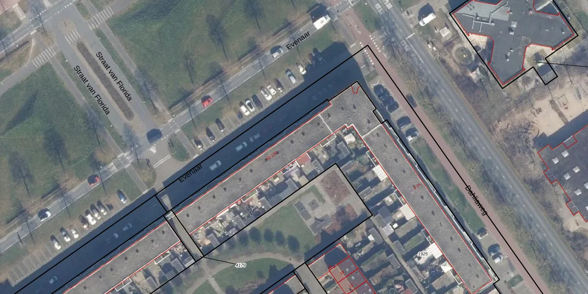 Het perceel waarop Evenaar 78 staat heeft een oppervlakte van 5188 m². Dit is een zeer groot perceel. De perceeloppervlakte wordt geregistreerd door het Kadaster. Gedetailleerde informatie over de maten van dit perceel kunt u vinden in het rapport Kadastrale kaart met maatvoering van Evenaar 78.