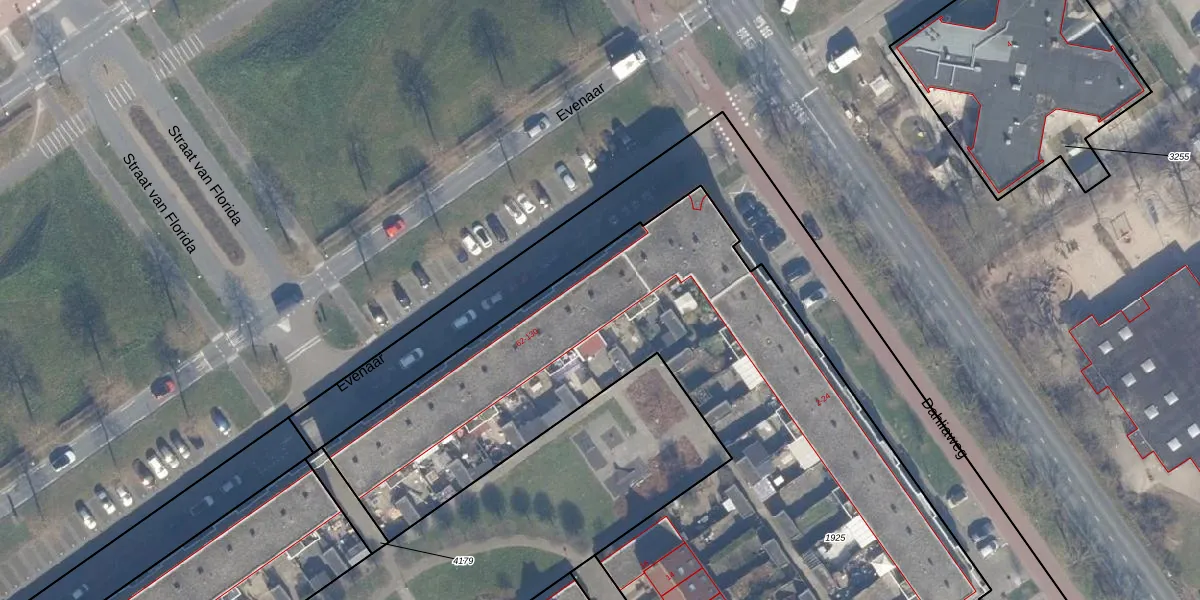 Het perceel waarop Evenaar 80 staat heeft een oppervlakte van 5188 m². Dit is een zeer groot perceel. De perceeloppervlakte wordt geregistreerd door het Kadaster. Gedetailleerde informatie over de maten van dit perceel kunt u vinden in het rapport Kadastrale kaart met maatvoering van Evenaar 80.
