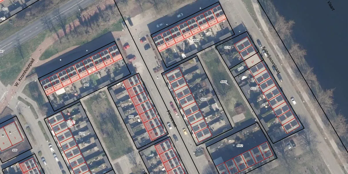 Het perceel waarop Fintstraat 14 staat heeft een oppervlakte van 1066 m². Dit is een zeer groot perceel. De perceeloppervlakte wordt geregistreerd door het Kadaster. Gedetailleerde informatie over de maten van dit perceel kunt u vinden in het rapport Kadastrale kaart met maatvoering van Fintstraat 14.