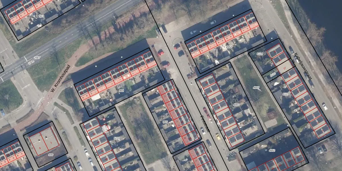 Het perceel waarop Fintstraat 25 staat heeft een oppervlakte van 779 m². Dit is een groot perceel. De perceeloppervlakte wordt geregistreerd door het Kadaster. Gedetailleerde informatie over de maten van dit perceel kunt u vinden in het rapport Kadastrale kaart met maatvoering van Fintstraat 25.