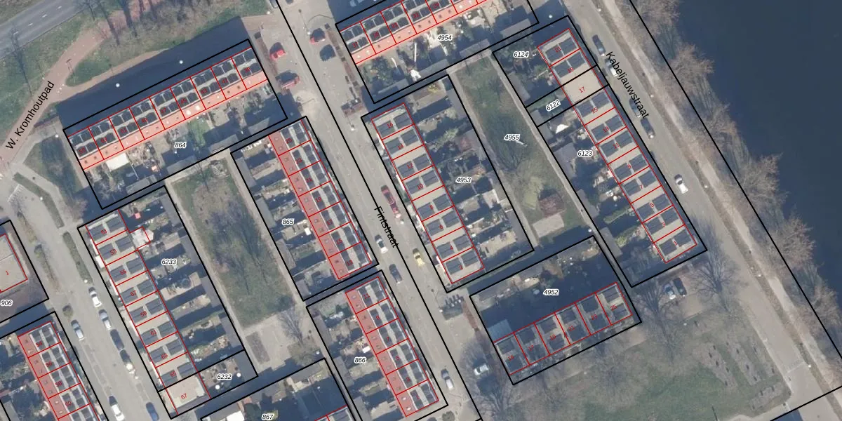 Het perceel waarop Fintstraat 8 staat heeft een oppervlakte van 1066 m². Dit is een zeer groot perceel. De perceeloppervlakte wordt geregistreerd door het Kadaster. Gedetailleerde informatie over de maten van dit perceel kunt u vinden in het rapport Kadastrale kaart met maatvoering van Fintstraat 8.