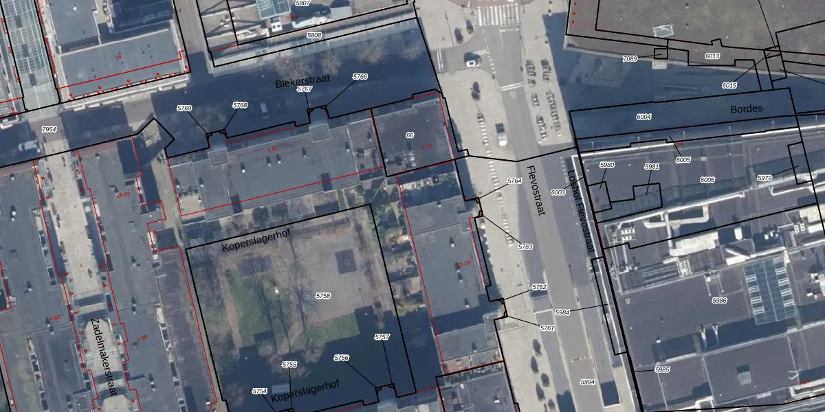 Flevostraat 44 is gelegen op kadastraal perceel AMR04K5787. Deze kadastrale aanduiding is uniek en wordt gebruikt door het Kadaster om eigendomsrechten en andere zakelijke rechten vast te leggen. Het perceel maakt onderdeel uit van de kadastrale gemeente Almere.