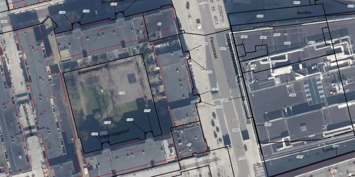 Het adres ligt op het perceel AMR04-K-5787, dat zich in de kadastrale gemeente Almere bevindt. Het perceel is met 1,3 ha relatief groot. Het gemiddelde ligt in de kadastrale gemeente Almere op 3328,15 m². Het grootste perceel in de kadastrale gemeente is 32,12 km². Het kleinste perceel heeft een oppervlakte van 0 m². Op het perceel zijn 317 adressen aanwezig. In de Basisregistratie Kadaster (BRK) werden de grenzen van het perceel geregistreerd op 16-04-2003.