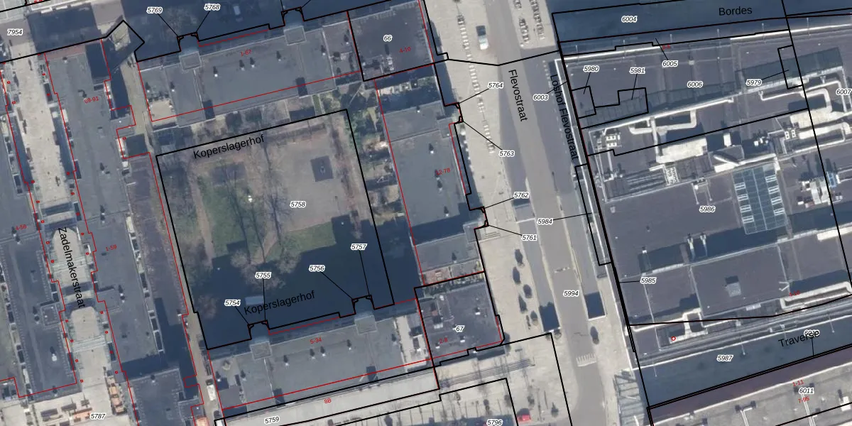 Het adres ligt op het perceel AMR04-K-5787, dat zich in de kadastrale gemeente Almere bevindt. Het perceel is met 1,3 ha relatief groot. Het gemiddelde ligt in de kadastrale gemeente Almere op 3328,15 m². Het grootste perceel in de kadastrale gemeente is 32,12 km². Het kleinste perceel heeft een oppervlakte van 0 m². Op het perceel zijn 317 adressen aanwezig. De laatste wijziging in het de Basisregistratie Kadaster (BRK) was op 16-04-2003.