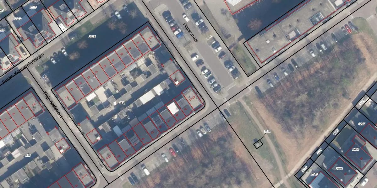 Het perceel waarop Flipjestraat 14 staat heeft een oppervlakte van 3438 m². Dit is een zeer groot perceel. De perceeloppervlakte wordt geregistreerd door het Kadaster. Gedetailleerde informatie over de maten van dit perceel kunt u vinden in het rapport Kadastrale kaart met maatvoering van Flipjestraat 14.