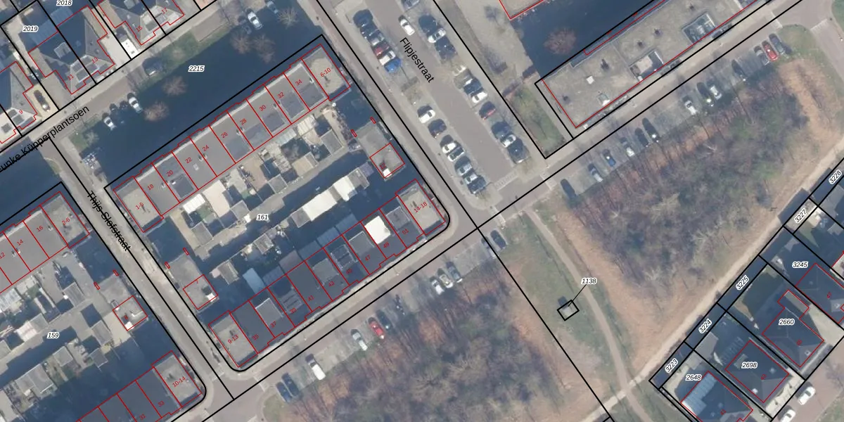 Het perceel waarop Flipjestraat 16 staat heeft een oppervlakte van 3438 m². Dit is een zeer groot perceel. De perceeloppervlakte wordt geregistreerd door het Kadaster. Gedetailleerde informatie over de maten van dit perceel kunt u vinden in het rapport Kadastrale kaart met maatvoering van Flipjestraat 16.