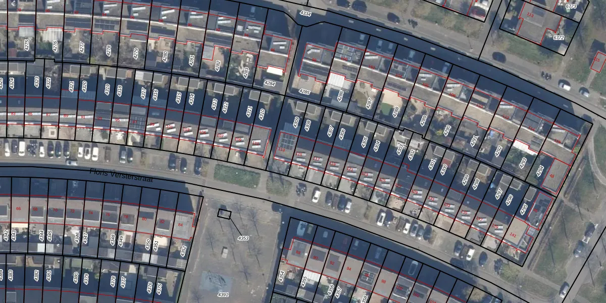 Floris Versterstraat 115 is gelegen op kadastraal perceel AMR04P4308. Deze kadastrale aanduiding is uniek en wordt gebruikt door het Kadaster om eigendomsrechten en andere zakelijke rechten vast te leggen. Het perceel maakt onderdeel uit van de kadastrale gemeente Almere.