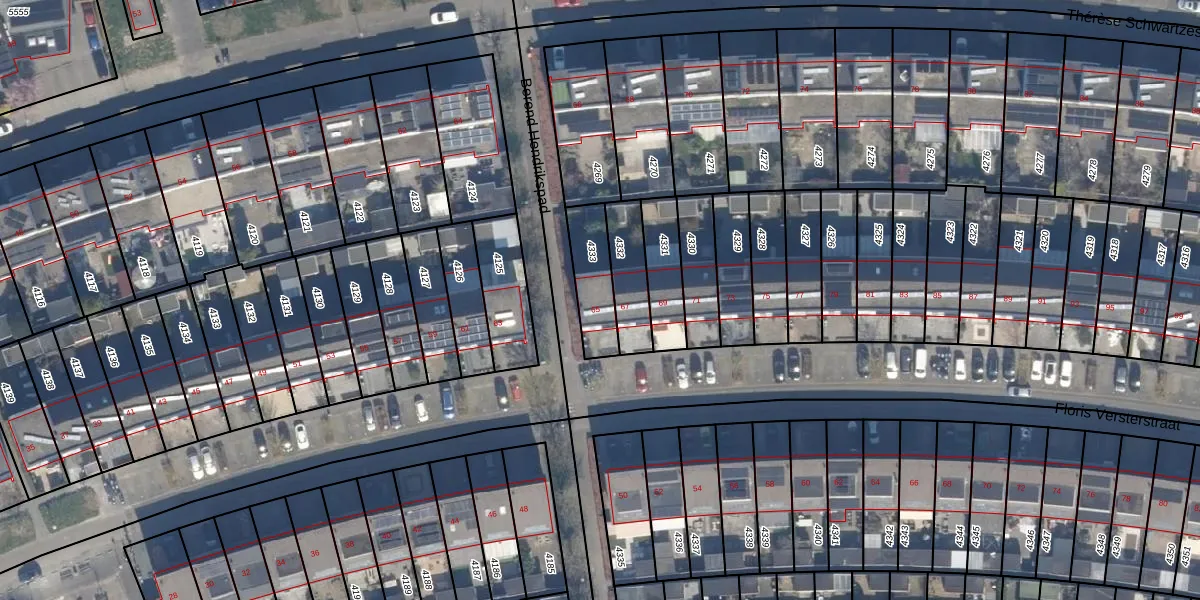 Het perceel waarop Floris Versterstraat 65 staat heeft een oppervlakte van 158 m². Dit is een middelgroot perceel. De perceeloppervlakte wordt geregistreerd door het Kadaster. Gedetailleerde informatie over de maten van dit perceel kunt u vinden in het rapport Kadastrale kaart met maatvoering van Floris Versterstraat 65.
