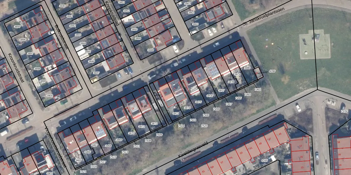 Het perceel waarop Fluitekruidstraat 13 staat heeft een oppervlakte van 184 m². Dit is een middelgroot perceel. De perceeloppervlakte wordt geregistreerd door het Kadaster. Gedetailleerde informatie over de maten van dit perceel kunt u vinden in het rapport Kadastrale kaart met maatvoering van Fluitekruidstraat 13.