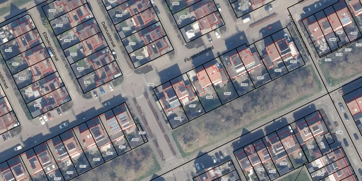 Gebruik de zoekbalk of klik op een perceel voor informatie over de adressen binnen dit perceel.