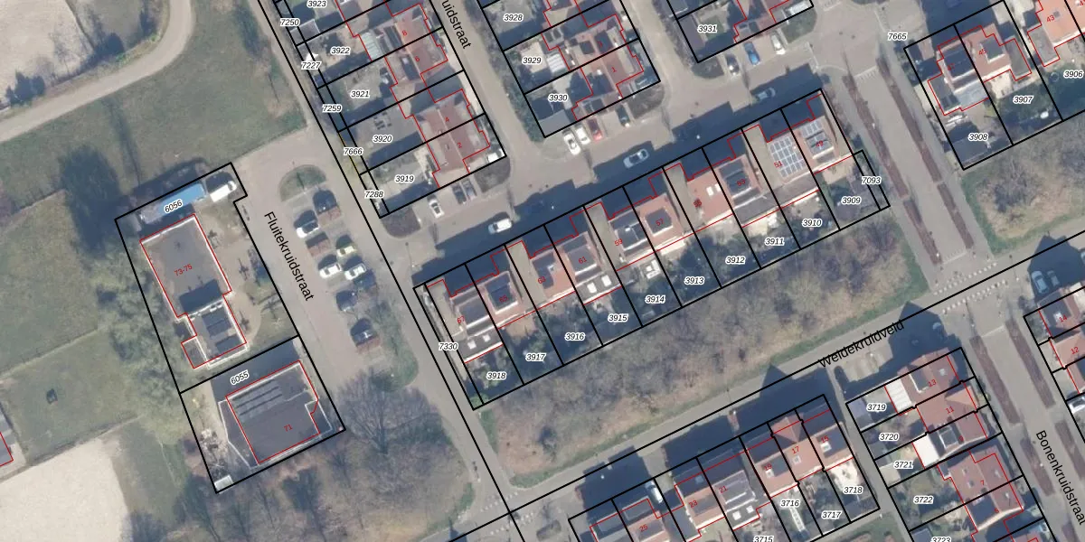 Gebruik de zoekbalk of klik op een perceel voor informatie over de adressen binnen dit perceel.
