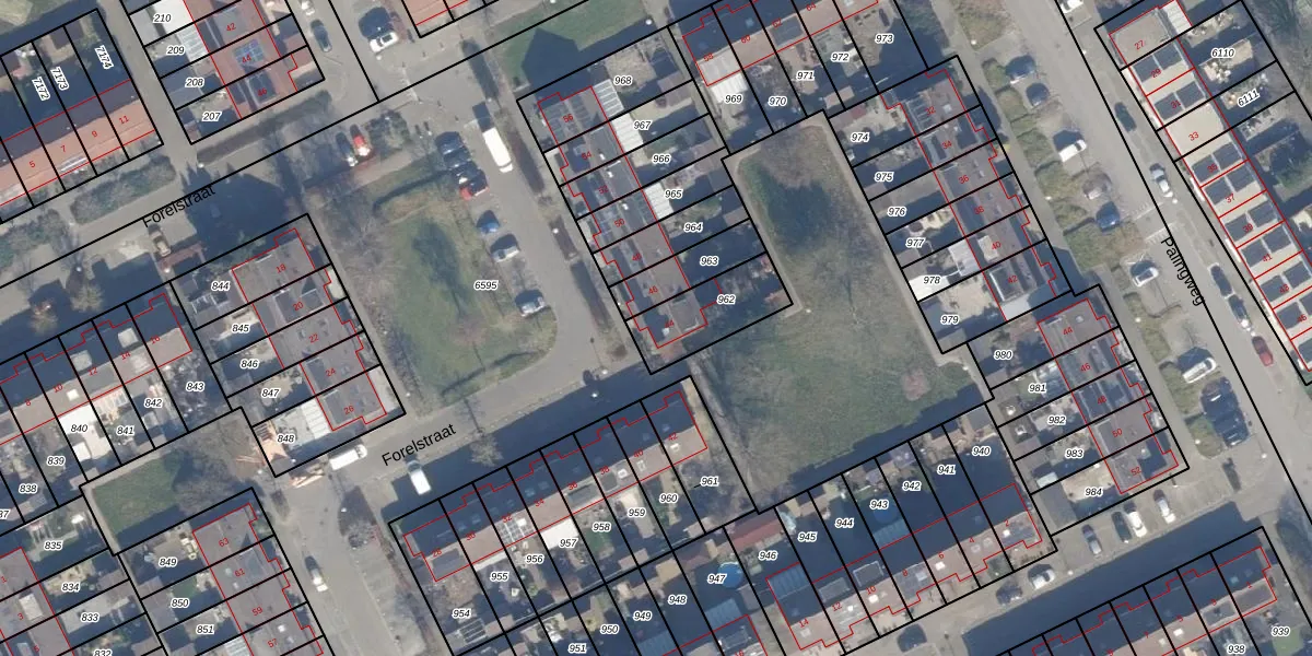 Forelstraat 44 is gelegen op kadastraal perceel AMR04O962. Deze kadastrale aanduiding is uniek en wordt gebruikt door het Kadaster om eigendomsrechten en andere zakelijke rechten vast te leggen. Het perceel maakt onderdeel uit van de kadastrale gemeente Almere.