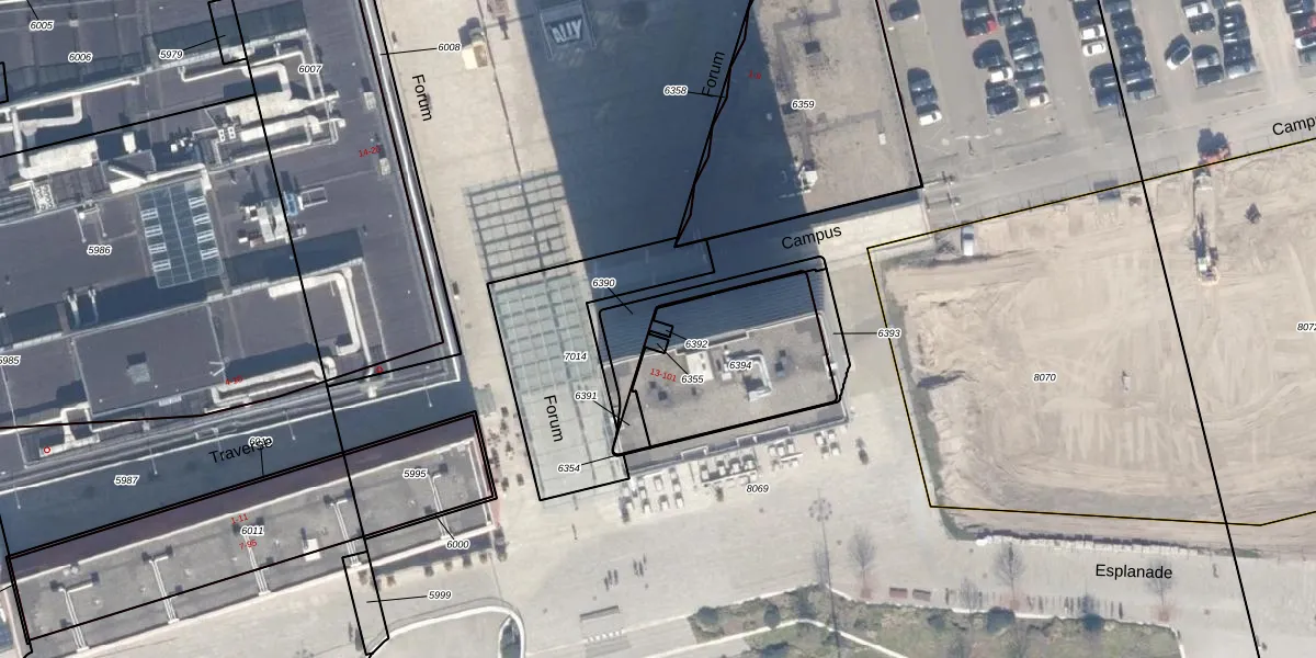 Forum 33 is gelegen op kadastraal perceel AMR04K6392. Deze kadastrale aanduiding is uniek en wordt gebruikt door het Kadaster om eigendomsrechten en andere zakelijke rechten vast te leggen. Het perceel maakt onderdeel uit van de kadastrale gemeente Almere.