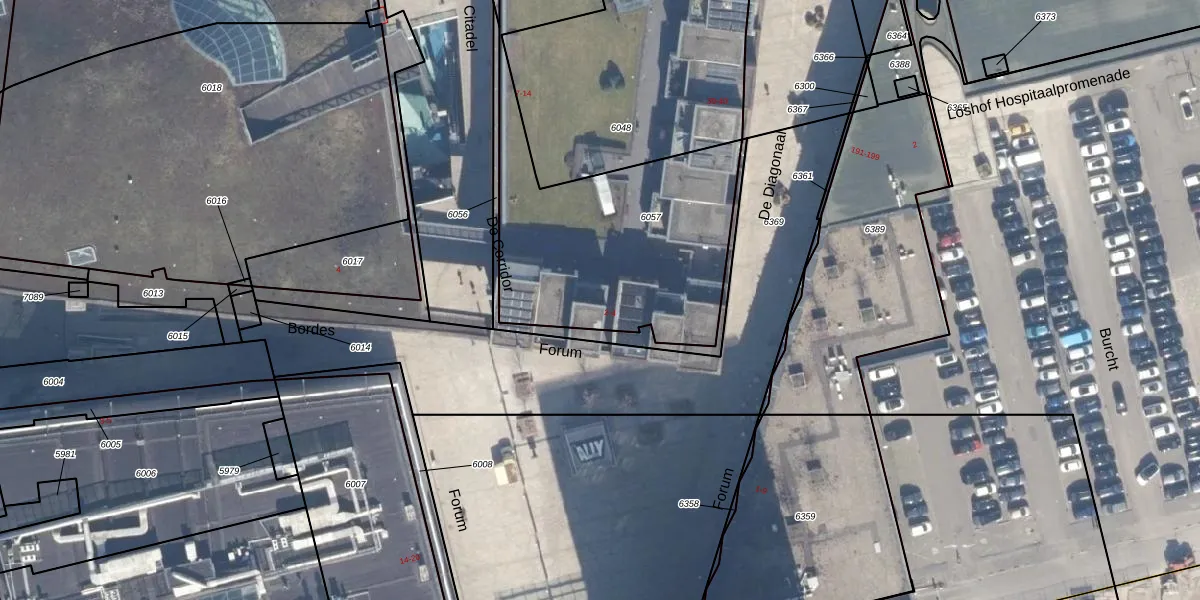 Het perceel waarop Forum 4 staat heeft een oppervlakte van 2004 m². Dit is een zeer groot perceel. De perceeloppervlakte wordt geregistreerd door het Kadaster. Gedetailleerde informatie over de maten van dit perceel kunt u vinden in het rapport Kadastrale kaart met maatvoering van Forum 4.